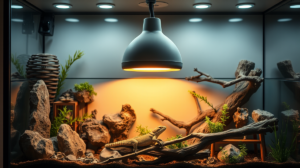Bei der Installation eines Terrarium Beleuchtungssystem sollten Sie auch auf Temperaturgradienten achten. Reptilien thermoregulieren, indem sie zwischen wärmeren und kühleren Bereichen wechseln. Positionieren Sie die Hauptlichtquelle daher über einem Bereich des Terrariums und lassen Sie andere Bereiche etwas kühler, um Rückzugsmöglichkeiten zu bieten.